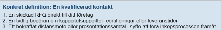 en RFQ (offertförfrågan), ett bekräftat möte eller en kapacitetsfråga